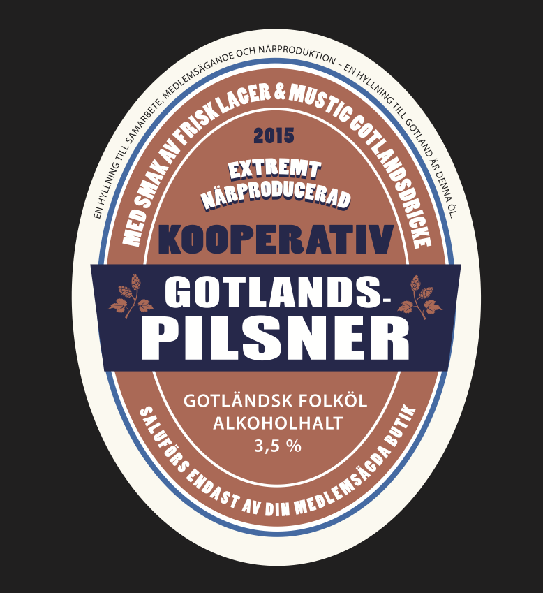 Kooperativ Gotlandspilsner - smakmässigt; lika delar Gotlandsdricke som frisk lager. Färgmässigt, som bärnsten, som martallskåda.
